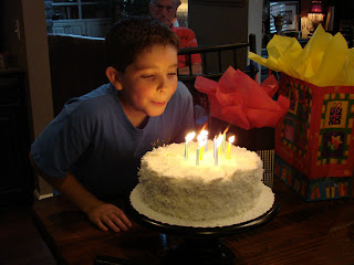 Jake had his birthday party last Saturday! He only wanted a cheeseburger and a coconut cake! He got what he asked for and I think he was pretty happy.